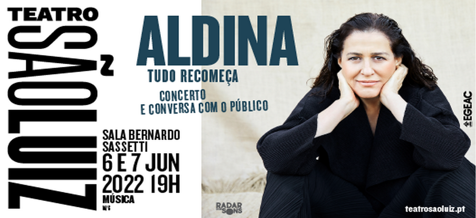 “Tudo Recomeça”, o mais recente disco de Aldina, será apresentado em duas sessões únicas e especiais a realizar no Teatro São Luiz, na Sala Bernardo Sassetti, nos dias 6 e 7 de junho às 19h. Num formato inédito, serão interpretados exclusivamente os fados que integram o álbum, respeitando o seu alinhamento, seguindo-se uma conversa com o público.